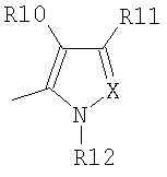 , где R5 – фенил, необязательно замещенный 1-3 группами, выбранными из нитро, трифторметила, бензилокси, гидрокси, алкокси, алкила, где алкил содержит 1-4 атома углерода, циано, диалкиламино, где алкил содержит 1-4 атома углерода, либо тиофенового или нафтильного кольца; R6, R7, R8 и R9 независимо представляют собой водород, галоген, трифторметокси, сульфонил или алкил, содержащий 1-4 атома углерода, R10 – водород, нитрильная группа, или алкил, содержащий 1-4 атома углерода, R11 – трет-бутил или фенил, или вместе с Х образуют тетраметиленовое кольцо, или; R12 – фенил, возможно замещенный нитро, галогеном, алкокси, или фенил-алкил, где алкил содержит 1-4 атома углерода, Х – углерод, если R11 вместе с Х образуют тетраметиленовое кольцо, в противном случае, Х означает азот, метин, метилметин, этилметин, пропилметин, изопропилметин, трет-бутилметин или фенилметин.