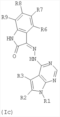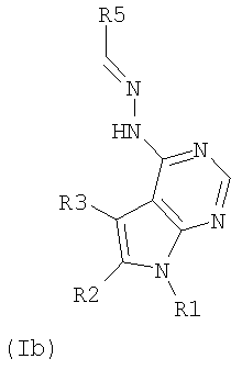 взятым в эквивалентном количестве, где R1 и R3 такие, как указано выше, добавляя 2-10-кратный молярный избыток NaH, в течение времени от 0,5 до 6 ч, полученную смесь выливают на лед, выпавший в осадок продукт, представляющий собой соединение Ia, отделяют и подвергают очистке, или B) осуществляют реакцию имидоилхлорида общей формулы (III), полученного как указано выше, с гидразингидратом, взятым в 2-10-кратном молярном избытке, в среде полярного органического растворителя, продукт реакции в органической фазе отделяют от смеси, органическую фазу сушат и выпаривают, затем растирают с неполярным растворителем, полученное таким путем производное гидразина смешивают с полярным органическим растворителем и затем осуществляют реакцию с альдегидом, взятым в эквивалентном количестве, при температуре от 20 до 120°С в течение времени от 1 до 12 ч, затем продукт реакции, представляющий собой гидразонометил формулы Ib, отделяют, или C) производное гидразина, полученное в качестве промежуточного продукта на стадии В), смешивают с полярным органическим растворителем, и осуществляют реакцию с изатином, взятым в эквивалентном количестве, затем отделяют продукт реакции.