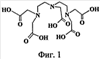 Известен контрастный препарат для МРТ на основе комплексного соединения гадолиния с диэтилентриаминпентауксусной кислотой (формула представлена фиг. 1) [Пат. РФ 2150961. Магнитно-резонансная контрастная композиция]. К недостаткам данного препарата следует отнести низкую величину его релаксационной эффективности (7500 л/моль·с), что приводит к необходимости использования высоких доз препарата, которые оказывают токсическое действие на организм человека.