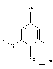Заявленное техническое решение поясняется фиг.4, которая представляет формулу тиакаликсаренового лиганда 2, где Х – n-трет-бутильный радикал, R – хелатирующий заместитель из числа приведенных в табл. 1.