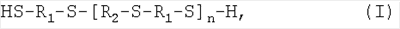 6. Способ получения композиции по п.1 или 2, содержащей полимер со структурной формулой (I) HS-R1-S-[R2-S-R1-S]n-H, где каждый R1 представляет собой одно и то же и описывается формулой (II) -[[(-СН2-)а-Х-]b-(СН2)с-]-, включающий перемешивание двух молей соединения, описывающегося формулой (III):