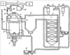 Через затворы 1 происходит выгрузка охлажденного кокса из камеры 2 тушения кокса. Из накопительной камеры 5 горячий газ через пылеосадительный бункер 6 поступает в котел-утилизатор 7, где охлаждается, и дымососом 8 подается снова в камеру тушения 2. Газ из камеры 5 по свече 4 подают в циклон 10, где он очищается от крупной пыли, и через рукавные фильтры 12, где очищается от мелкой пыли, по трубопроводам подают в газопровод 11 прямого коксового газа. По газопроводу 11 перекачивают коксовый газ из коксовых батарей 9 в химические цеха 14. Известно, что в результате процесса коксования в коксовых батареях образуется кокс и летучие химические продукты [3] в виде весьма сложной смеси паров и газов, образуя так называемый прямой коксовый газ состава (% весовые) смола – 80-130, аммиак – 8-13, углеводородные соединения – 30-40, коксовая пыль – 3-15, а также бензол, сероводород, цианистые соединения, пары воды, нафталин, пиридиновые основания, толуол, ксилол [3, стр.8-23]. Все указанные соединения содержатся также в газе, который эвакуируется из накопительной камеры 5 через свечу 4. В химических цехах 14 осуществляется полное разделение прямого коксового газа с выделением всех указанных веществ и коксового газа состава (в % объемных) водород – 54-59, метан – 23-28, оксид углерода – 2-3 и др. (указанный газ используют на отопление; его техническое название обратный коксовый газ). В химических цехах эта смесь газов подвергается охлаждению, из него выделяют воду, извлекают аммиак путем пропуска газа через серную кислоту с получением сульфата аммония по реакции: