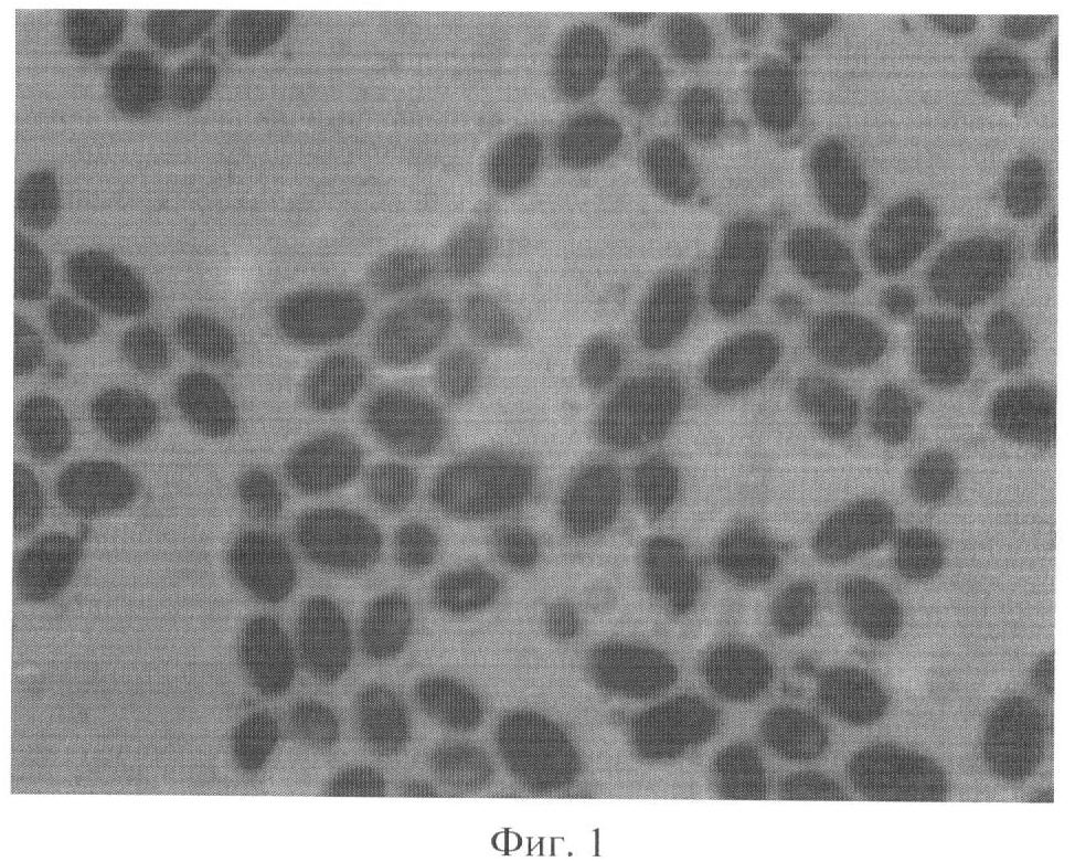 На фиг.1 представлено изображение штамма Saccharomyces cerevisiae TS2-06 (увеличение в 1350 раз), выращенного в жидкой среде МРС (Hi Media, Индия) в течение 16 часов при 37°С.