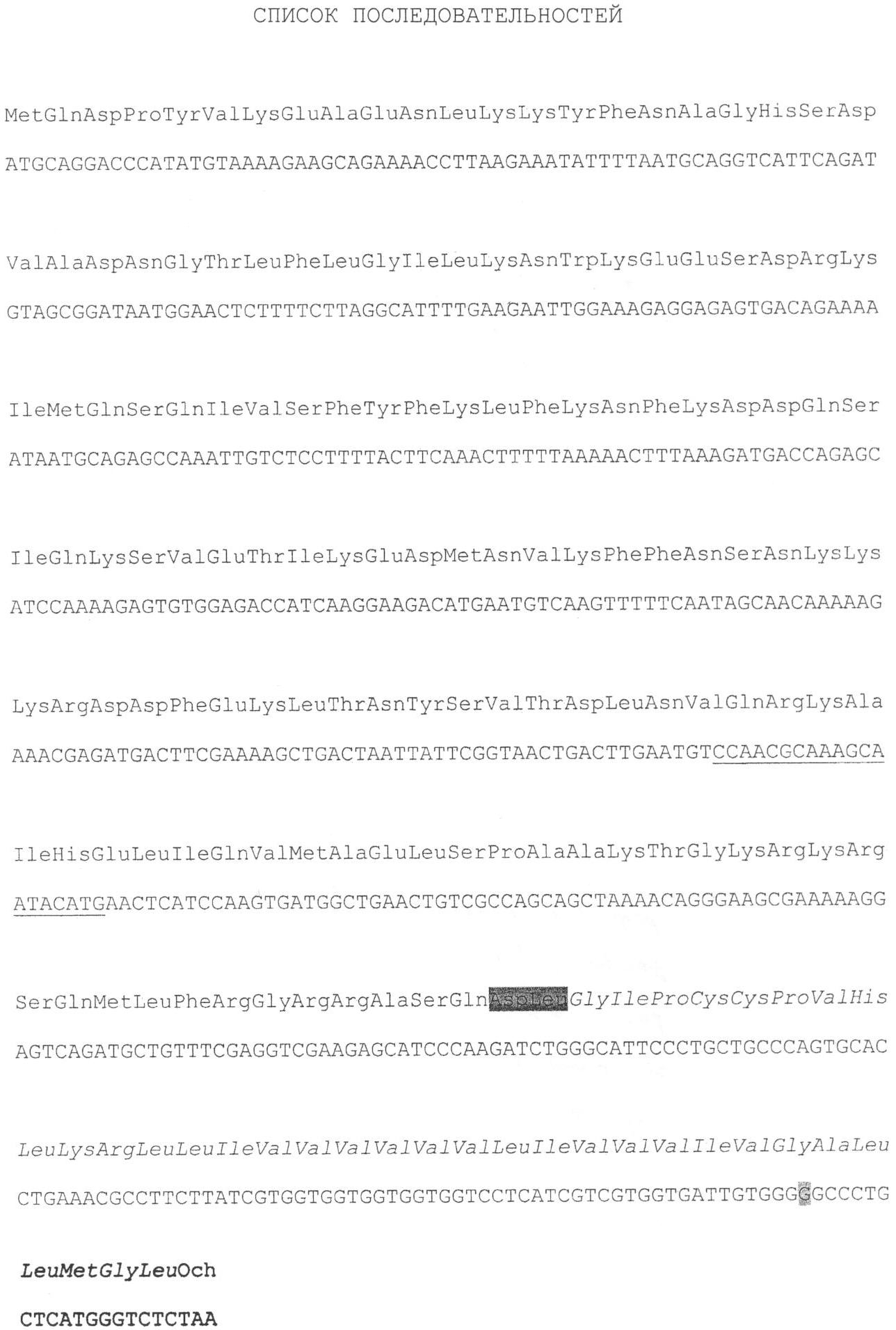 В более частном случае осуществления настоящего изобретения молекула нуклеиновой кислоты, кодирующая белок по изобретению, имеет нуклеотидную последовательность, соответствующую последовательности, представленной в SEQ ID No.1, или ее варианту с учетом вырожденности генетического кода.