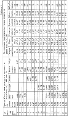 1 (таблица 2). После отбора примерно 0,5 кг расплава в кварцевую трубку в оставшийся в тигле расплав вводили висмут и отбирали около 0,5 кг сплава