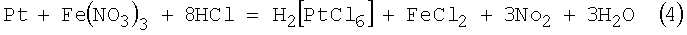 Таким образом, предлагаемый способ переработки концентратов платиновых металлов на железо-никелевой основе для извлечения платиновых металлов позволяет достигнуть высокого их извлечения в раствор, исключая при этом образования взрывоопасной воздушно-водородной смеси и выделения сильно ядовитого газа – фосфина. Образующиеся нерастворимые остатки с низким содержанием платиновых металлов могут быть направлены на обогатительные операции по известным технологиям. Источники информации 1. Ю.А.Котляр, М.А.Меретуков, Л.С.Стрижко. Металлургия благородных металлов. Т.2. Учебное пособие. М., Издательский дом «Руда и Металлы», 2005, с.269-273.