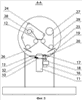 Система электромагнитного отклонения лучей может, например, состоять из электромагнитных катушек (на фиг. не показано), расположенных в камере пушек 2, а также из магнитопровода 32 П-образной формы с другой электромагнитной катушкой (на фиг. не показано), жестко закрепленных в непосредственной близости от испарителя 10 на расстоянии, не превышающем диаметр испарителя 10, например на расстоянии не более 3 см.