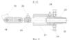 4. Распределитель по любому из пп.1-3, отличающийся тем, что он снабжен шкалой, которая закреплена на концевой части конвейера и имеет деления, отражающие расстояния между поверхностью ленты конвейера и нижней кромкой лобового элемента, и указателем, установленным на толкателе напротив шкалы.