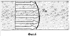 На фиг.1 представлена Блок-схема реализации способа; на фиг.2 – Направления перемещения смеси в смесительной камере при перемешивании; на фиг.3 – Направления перемещения смеси в смесительной камере при разрузке из камеры; на фиг.4 – Профиль скоростей движения смеси по трубопроводу при ламинарном течении; на фиг.5 – Профиль скоростей движения смеси по трубопроводу при переходе ламинарного течения в турбулентное; на фиг.6 – Профиль скоростей движения смеси по трубопроводу при турбулентном течении; на фиг.7 – Инерционные траектории движения смеси в пространстве; на фиг.8 – Смесительная камера, продольный разрез; на фиг.9 – Разрез А-А на фиг.8 смесительной камеры; на фиг.10 – Эжекторное устройство разгрузочного механизма (Вид Б-Б на фиг.9 сверху со стороны разгрузки смеси); на фиг.11 – Специальное устройство выгрузки из транспортной системы в виде сопла: а) коническое сопло, б) сопло специальной сложной конфигурации, в) прямоточное сопло; на фиг.12 – Сопло специальной сложной конфигурации для выгрузки с реконструкцией транспортного потока и укладки бетонной смеси, выполненное с внутренней поверхностью в виде гиперболоидной полуплоскости и диффузорной частью; на фиг.13 – Зависимость предела прочности при сжатии вырезанных из массива образцов бетона: а) традиционное торкретирование, коэффициент уплотнения 0,93-0,96, б) инерционное уплотнение с коэффициентом уплотнения 0,98-0,99, в) инерционное уплотнение с коэффициентом уплотнения 0,95-0,97; на фиг.14 – Схема размещения лопастей в смесительной камере перемешивания; где 1 – Смесительная камера перемешивания; 2 – Трубопровод пневмотранспорта; 3 – Аэрозольное смачивание смеси; 4 – Сопло выгрузки и укладки бетонной смеси; 5 – Устье факела укладки и уплотнения смеси; 6 – Инерционный факел укладки и уплотнения бетонной смеси; 7 – Нанесенная на поверхность смесь; 8 – Основа нанесения смеси при бетонировании; 9 – Загрузочный люк циклической загрузки компонентов смеси; 10 – Разгрузка смеси эжектированием; 11 – Уровень загрузки смесителя; 12 – Гравитационное перемещение смеси при перемешивании; 13 – Вертикальное направление перемещения смеси; 14 – Разгрузочный механизм; 15 – Единый напорный энергоисточник; 16 – Горизонтальное направление перемещения смеси при перемешивании; 17 – Горизонтальное направление перемещения смеси при выгрузке; 18 – Распылители аэрозольного смачивания смеси; 19 – Сопло эжектора разгрузки из смесительной камеры; 20 – Ось угла направления потока относительно горизонтальной оси при =0°; 21 – Ось траектории движения факела смеси при угле =0°; 22 – Ось угла направления потока относительно горизонтальной оси при =-(3-6°); 23 – Ось траектории движения факела смеси при угле =-(3-6°); 24 – Ось угла направления потока относительно горизонтальной оси при =-(40°-50°); 25 – Ось траектории движения инерционного факела смеси при угле =-(40°-50°); 26 – Ось угла направления потока относительно горизонтальной оси при =-(70°-80°); 27 – Ось траектории движения факела смеси при угле =-(70°-80°); 28 – Ось смесительной камеры перемешивания; 29 – Привод реверсивный смесительной камеры перемешивания; 30 – Лопасти для перемешивания на держателях; 31 – Внутренняя поверхность сопла сложной конфигурации в виде гиперболоидной полуплоскости; 32 – полулопасть; 33 – величина перехлеста лопастей; 34 – угол наклона лопастей; 35 – диффузорная ч