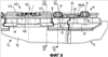 Теперь следует снова сослаться на фиг.1-3. Внешние части 11 плиты опорной рамы соединены со средней частью 12 плиты опорной рамы соответственно с возможностью поворота. Внешние части 11 плиты опорной рамы опираются для этого со стороны очистного забоя через цапфы (не показаны) на резцедержатели 5. Передача усилий, введенных толкателем 40 в среднюю часть 12 плиты опорной рамы, на внешние части 11 плиты опорной рамы, так что они в данном направлении движения, оказывая, в основном, очистное действие, опережают среднюю часть 12 плиты опорной рамы, происходит, в основном, через очистные колодки 21, которые со стороны закладки приварены к секциям 22 внешних частей 11 плиты опорной рамы. Очистные колодки 21 выдаются за соответствующие секции 22, 15, в основном, на ту же высоту, что и колодочные детали 17, так что передача усилий может происходить через достаточно широкие стыковые поверхности 23 колодочных деталей 17 и стыковые поверхности 24 очистных колодок 21. Как видно, в частности, на фиг.2 и 3, обе очистные колодки 21 снабжены выступающими направляющими колодками 25, чтобы направлять по направляющему профилю цепного скребкового конвейера и т.п. также внешние части 11 плиты опорной рамы, а очистные колодки 21 и колодочные детали 17 попеременно накладываются друг на друга на стыковых поверхностях 23, 24 посредством выступающих носиков 26 и кромок 27 на соответствующих стыковых поверхностях 23, 24. Носики 26 на очистных колодках 21, входящие во впадины 28 на стыковой поверхности 23 колодочной детали 17, обеспечивают в то же время боковое опирание очистных колодок 21 и, тем самым, внешних частей 11 плиты опорной рамы относительно средней части 12 плиты опорной рамы. Носики 26 выполняют здесь, следовательно, двойную функцию, а именно опирание в вертикальном направлении и одновременное боковое опирание.