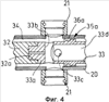 На фиг.4 хорошо видно, что полость 33d поршня через радиальное отверстие 33с в поршневой трубе и поперечное отверстие 33b в хвостовике 33а соединена с кольцевым зазором 34. Смежный конец поршневого штока 32 имеет глухое отверстие, снабженное внутренней резьбой 32а, которая свинчивается с наружной резьбой хвостовика 33а поршневой трубы 33. К направляющей втулке 35а прилегает уплотнительное кольцо 36а, которое уплотняет кольцевой зазор 34 и ограничивает его.