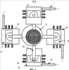 Двигатель Стирлинга 18 запускается значительно позже из-за его инерционности. Шатуны 24 и 27 и поршни 23 и 25 двигателя Стирлинга приводятся в действие при помощи внутреннего вала 2 газотурбинного двигателя 1 от компрессора первого каскада 4, который раскручивается в режиме авторотации воздухом, проходящим через него. Механизм преобразования вращательного движения в возвратно-поступательное (этот механизм на фиг.1 3 детально не показан, но он может быть выполнен в виде коленчатого вала с шатунами) преобразует вращательное движение внутреннего вала 2 в возвратно-поступательное движение поршней 23 и 25 двигателя Стирлинга 18. Выхлопные газы нагревают через оребрение 22 рабочее тело внутри рабочих цилиндров 19. Для работы двигателя Стирлинга достаточно иметь разницу температур на двух группах цилиндров 19 и 20. Первоначально двигатель Стирлинга работает принудительно и не выдает мощность, а, наоборот, ее потребляет. Примерно через 5 10 мин по мере прогрева рабочего тела внутри рабочих цилиндров 19 двигателя Стирлинга он выходит на расчетный режим работы. Медленный выход двигателя Стирлинга на расчетный режим работы является одним из его недостатков, но высокий КПД, надежность и хорошие экологические свойства в сочетании с ГТД, имеющим хорошие характеристики запуска, делает предложенный двигатель чрезвычайно интересным по всем показателям одновременно, т.к. позволит частично утилизировать тепло в реактивном сопле и применить вместо 4 5 ступеней турбины только одну ступень.