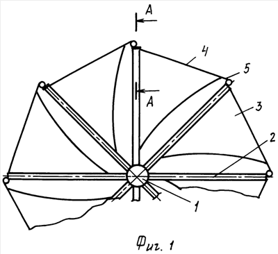Для достижения технического результата в трубчатых спицах размещены упругие элементы состоящие, по крайней мере, из двух частей с разным модулем упругости, взаимодействующие со штоком, связанным с натяжной тягой, которая пропущена через ролик со скобой, установленные в серьге, которая шарнирно размещена в гайке, смонтированной на верхней части спицы.