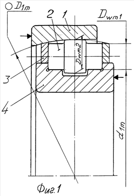 Наружное кольцо 1 становится съемным, что обеспечивает проведение сборки и разборки деталей подшипника, так как внутреннее кольцо 4 в сборе с роликами 2 и сепаратором 3 проходит через отверстие кольца 1 со стороны вн.