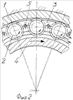 На фиг.1 изображен подшипник качения радиально-упорный роликовый однорядный. На фиг.2 дано продольное сечение подшипника, на котором стрелками показано направление вращения внутреннего кольца, роликов, направление перемещения комплекта роликов и сепаратора при защемленном наружном кольце подшипника. Точками показаны места контакта больших и меньших ступеней роликов с дорожками качения – наружного и внутреннего кольца. На фиг.3 приведено поперечное сечение наружного однобортового кольца подшипника.