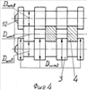 Надо отметить, что ролики 3 содержат четыре участка больших ступеней роликов и три участка – меньших ступеней с диаметром, равным Dwm1. Ролики 4 состоят из коротких цилиндрических роликов, которые контактируют своими большими ступенями с диаметром Dwm1 нижнего яруса с тремя участками меньших ступеней роликов 3. При этом их диаметры равны (см. фиг.4) по диаметру равных Dwm1.