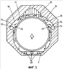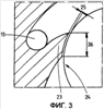 На фиг.3 в подробностях показаны выполненные в виде язычков корпуса. Язычки 23 корпуса выполнены таким образом, что остается лишь минимально возможная ширина зазора 25 между язычками 23 корпуса и вращающимися диаметрами 24 втулки цапфы или рабочей втулки уплотнения цапфы. Чем меньше зазор 25, тем больше смазочного материала 2 отводится в приемные камеры 15, 16 для смазочного материала. Кроме того, следует реализовать максимально возможную длину 26 зазора. Язычки 23 корпуса расположены таким образом, чтобы как можно больше смазочного материала 2 направлялось в верхние отверстия 13 для возврата смазочного материала. Лишь небольшое количество смазочного материала 2 попадает в нижние отверстия 20.