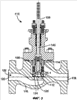 Регулирующий элемент 114 имеет наружную поверхность 132, размеры которой выбраны из условия обеспечения введения со скольжением в канал 136. К элементу 114 присоединен шток 138, присоединенный также к исполнительному механизму (не показан). Указанный механизм перемещает шток 138 и элемент 114 возвратно-поступательным образом по оси 140 между открытым и запирающим положениями. Кроме того, регулирующий элемент 114 имеет ограничивающую поверхность 141, выполненную с возможностью взаимодействия с ограничивающей поверхностью 128 кольца седла, ограничивая тем самым перемещение регулирующего элемента 114.