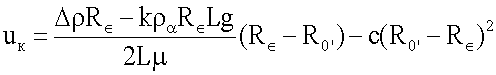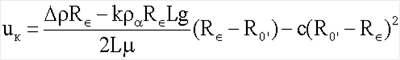 Приведем описание движения контейнера в трубе. В горизонтальном газопроводе, диаметр которого dт, движется цилиндрический контейнер длиной L и диаметром dк(dкт). Контейнер содержит флюид плотностью ж. Вес конструкции контейнера считаем пренебрежимо малым по сравнению с весом жидкости в нем. Контейнер движется на шарикоподшипниках и коэффициент трения качения равен . Контейнер движется за счет перепада давления, который мы считаем постоянным и известным. Также существует перетекание флюида через кольцевой зазор между контейнером и трубой, из-за этого возникает вязкое трение в зазоре. Можно показать, что установившаяся скорость контейнера будет следующей:
