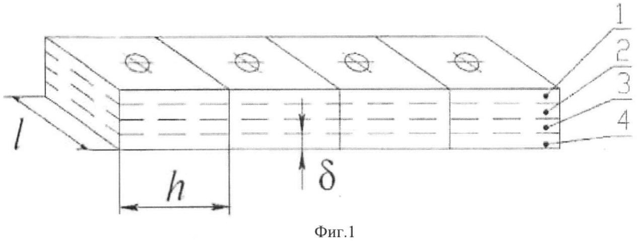 На фиг.1 представлена схема поперечной разделки пластины из материала газопровода на анализируемые «элементы», при этом направления вертикальной поперечной резки показаны тонкими линиями, а схема послойной разделки пластины на слои анализируемых «элементов» показана горизонтальными пунктирными линиями.