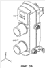 Циркуляционный насос 40 радиационного контура привинчен к фланцу 42 второго литого корпуса 102. Рабочее колесо 43 насоса радиационного контура установлено в улитке 44, выполненной во втором литом корпусе. Жидкость подается на вход (не показан) насоса радиационного контура и выпускается через выпуск 46 в периферии улитки. Внутренний проход в литом корпусе соединяет выпуск насоса с подающим патрубком 26 радиационного контура.