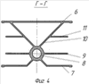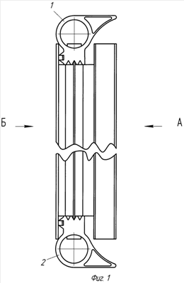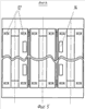 Коллекторы отводящий и подводящий выполнены идентичными. Каждый коллектор выполнен в виде фасонной «клювообразной» в поперечном сечении формы со смещенным каналом 15 и полостью 19, утолщенной опорой 16, боковыми треугольными буртиками 13 (фиг.3). На торце утолщенной опоры коллекторов выполнены преимущественно три синусоидальные канавки.