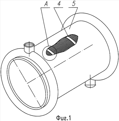 Для увеличения поверхности теплосъема на огневой поверхности внутренней оболочки 1 выполнены продольные ребра 6.