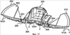 Вдоль двух боковых сторон, параллельных боковой периферической стенке 201, приводной механизм 200 содержит полки 203, неподвижно соединенные с поворотными опорными шейками 204 приводного механизма 200. На уровне опорных шеек 204 эти полки содержат вырезы, поэтому приводной механизм 200 содержит два пустых пространства 205 между боковой периферической стенкой 201 и двумя опорными шейками 204.