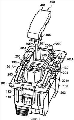 На фиг.1-9 показан электрический прибор, содержащий одномодульный цоколь 100, предназначенный для установки прибора в не показанное на чертежах гнездо.