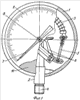 1. Манометр, содержащий цилиндрический корпус, в котором установлен узел держателя с трубкой Бурдона внутри корпуса и штуцером для подключения к измеряемому давлению с внешней стороны корпуса, трубка Бурдона свободным концом связана с помощью тяги с передаточным трибко-секторным механизмом, преобразующим перемещение свободного конца трубки в круговое движение стрелки, установленной на оси трибки и располагающейся над циферблатом, отличающийся тем, что, с целью повышения надежности работы манометра при действии повторно-переменных нагрузок, а также вследствие усталости материала трубки Бурдона, могут возникнуть трещины, или таковые уже есть в материале, трубка Бурдона выполнена составной из двух и более тонкостенных трубок, надетых друг на друга путем посадки с натягом , что увеличивает ее механическую прочность, кроме того, составная трубка Бурдона сохраняет свою герметичность даже в случае возникновения трещин, которые блокируются, если образовались на внутренней тонкостенной составной трубке Бурдона, то они блокируются наружной и наоборот, если образуются на наружной, то они блокируются внутренней.
