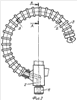 2. Манометр по п.1, отличающийся тем, что составная трубка Бурдона предохраняется от вспучивания, особенно в местах образования трещин, при возникновении больших давлений от заданного рабочего давления, путем применения ребер жесткости, выполненных в виде пластин, в которых выполнено отверстие, равное поперечному сечению составной трубки Бурдона, причем пластины крепятся путем посадки с натягом к внешней образующей поверхности трубки Бурдона на определенном расстоянии L друг от друга по всей ее длине.