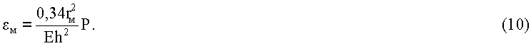 Подставляя (11) в (10), можно найти толщину мембраны h при выбранном радиусе мембраны rм для заданного предела измерения давлений Р.