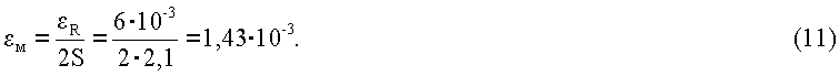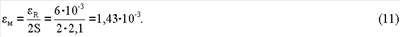 Обычно номинальный выходной сигнал датчика задается в относительных единицах и равным 6·10-3, коэффициент тензочувствительности металлопленочных тензорезисторов S=2,1. Исходя из этого можно определить м: