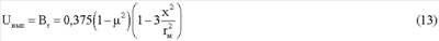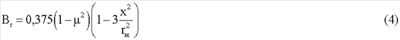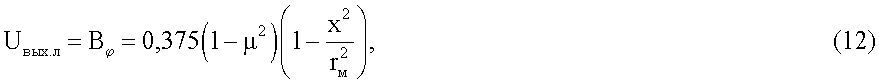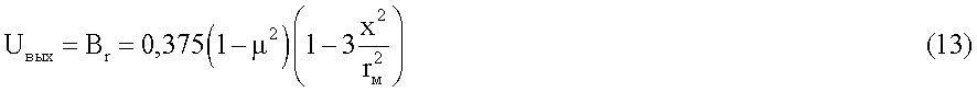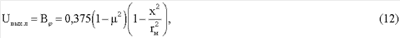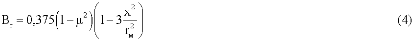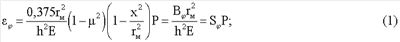где х – текущая координата радиуса; rм – радиус мембраны; Е – модуль упругости материала мембраны; µ – коэффициент Пуассона; B , Br – конструктивные коэффициенты чувствительности мембраны к давлению для случаев использования окружных и радиальных деформаций; S , Sr – чувствительности мембраны при использовании окружных и радиальных деформаций соответственно.