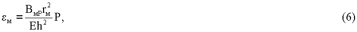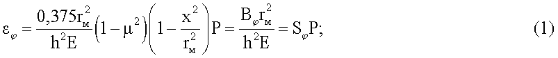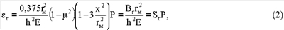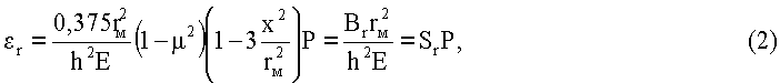 Измеряемое давление действует на мембрану, которая деформируется и на ее поверхности возникают относительные окружные  и радиальные деформации r, определяемые выражениями (1) и (2).