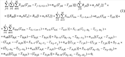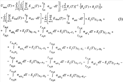 Тjim – температура контактирующих материалов m-ой термоэлектрической структуры i-ого тензоэлемента j-ого тензорезистора;
