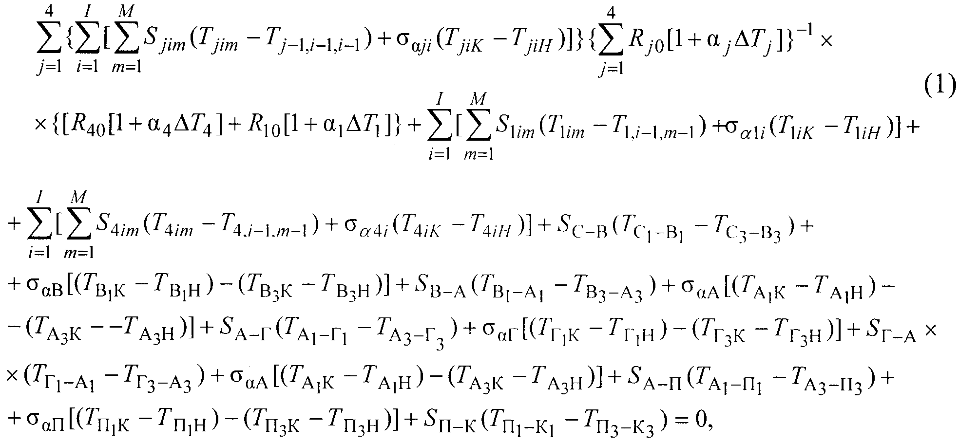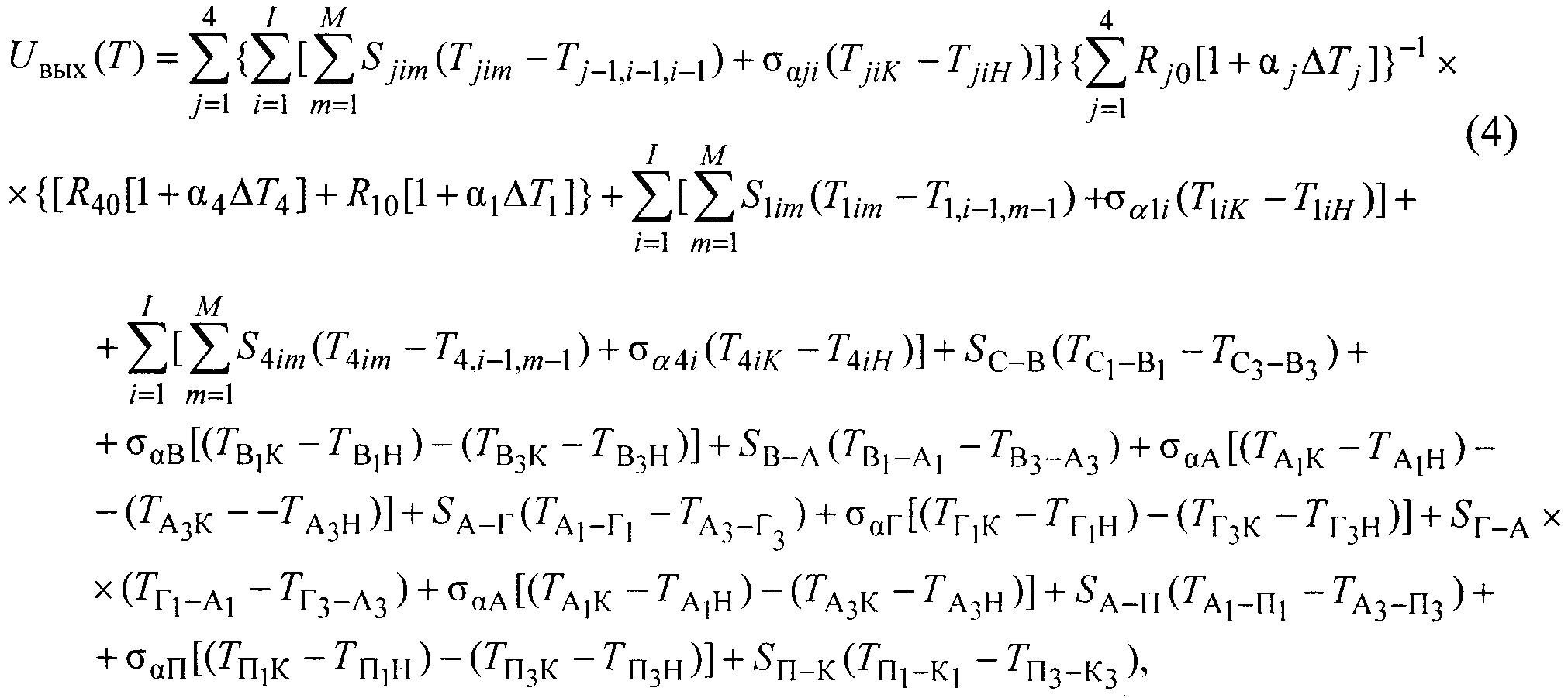 Tjim – температура контактирующих материалов m-ой термоэлектрической структуры i-ого тензоэлемента j-ого тензорезистора;