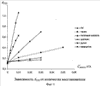 Для исследования влияния восстановителей органической природы на изучаемые индикаторные системы были выбраны наиболее часто встречающиеся в реальных объектах антиоксиданты: рутин, танин, кверцетин, галловая кислота, цистеин. Зависимости A510 от содержания восстановителя в растворе и их параметры представлены на фиг.1 и в таблице 1.