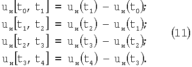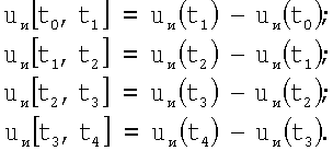 В пяти точках при t=t0, t1, t2, t3, t4, которые служат границами четырех примыкающих друг к другу интервалов интегрирования, измеряют выходное напряжение интегратора: uи(t0), uи(t1), uи(t2), uи(t3), uи(t4) и вычисляют значения интеграла напряжения на двухполюснике в границах каждого интервала: