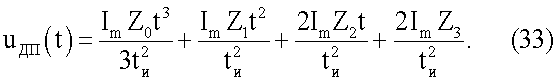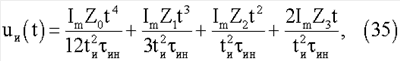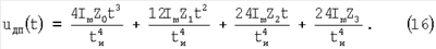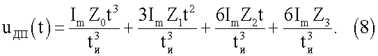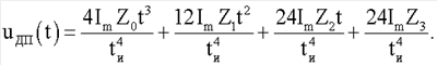 объекта измерения формируется импульс напряжения, которое содержит принужденную и свободную составляющие. Принужденная составляющая напряжения uдп(t) на многоэлементном двухполюснике после окончания переходного процесса состоит из напряжений кубичной, квадратичной, линейной и плоской (прямоугольной) формы:
