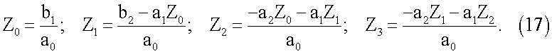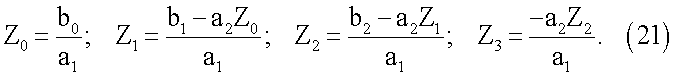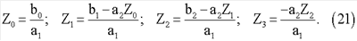 В этом случае в выражениях для параметров Z0, Z1, Z2, Z3 индексы коэффициентов знаменателя смещаются на единицу, т.е.