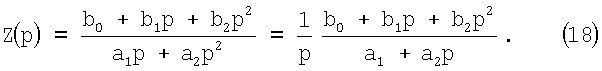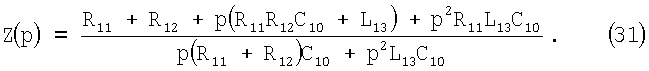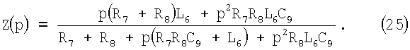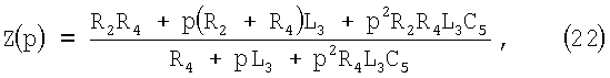 Для четырехэлементного двухполюсника, имеющего конечное (не нулевое и не бесконечное) сопротивление на постоянном токе, сопротивление в операторной форме в общем случае можно представить дробно рациональной функцией