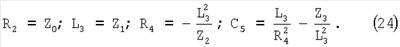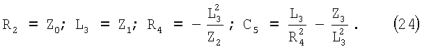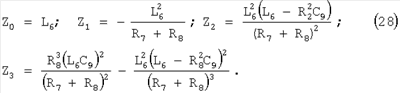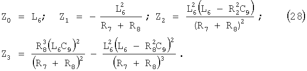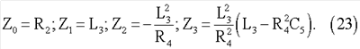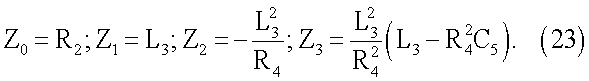 Решение системы уравнений (30) относительно величин Z0, Z1, Z2, Z3 позволяет вычислить параметры элементов двухполюсника L6, R7, R8, C9 с помощью формул (28).