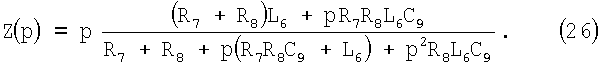 Пример 2. Рассмотрим двухполюсник с нулевым сопротивлением на постоянном токе с элементами L6-R7-R8-C9. Его операторное сопротивление выражается в виде