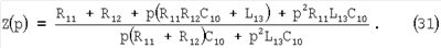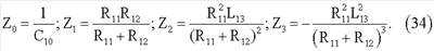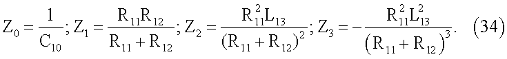 Решение системы уравнений (36) относительно величин Z0, Z1, Z3, Z3 используется для вычисления параметров элементов двухполюсника С10, R11, R12, L13 с помощью формул (34).