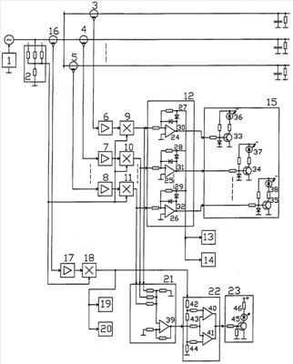 Блок 12 выполнен в виде операционных выпрямителей 24, 25, 26, входы которых подсоединены к входам блока 12, выходы 27, 28, 29 выпрямленного напряжения объединены и связаны с одним выходом блока 12, а выходы 30, 31, 32 невыпрямленного напряжения подключены к другим выходам блока 12.