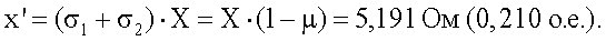 Определяется суммарное реактивное сопротивление рассеяния статора и ротора x’: