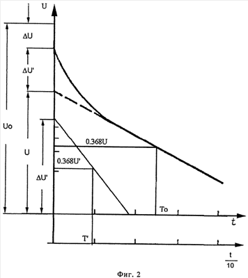 Постоянная времени Т0 определяется по фиг.2 как время, в течение которого медленно меняющаяся часть напряжения U затухает до 1/ =0,368 своего начального значения.