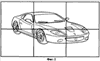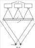 С помощью цифровой обработки изображение разбивается на фрагменты (фиг.2), и каждый проектор демонстрирует соответствующий ему фрагмент на просветный экран с линзовым растром, где все фрагменты изображения пространственно совмещаются. При этом для каждого ракурса формируется общая зона видения от всех проекторов. Этого добиваются юстировкой положения проекторов относительно экрана таким образом, что в зоне наблюдения, содержащей 15 ракурсов (фиг.3) (5×3 – один элемент объемного изображения задают 5 рядов пикселей по горизонтали и 3 ряда – по вертикали), при расположении глаза в общей зоне видения ракурса 1 от всех шести проекторов в глаз попадает изображение, соответствующее первому ракурсу. При перемещении глаза в зону ракурса 2 от всех проекторов в глаз попадает изображение, соответствующее второму ракурсу, и т.д. при наблюдении из общей зоны видения 15-го ракурса от всех проекторов в глаз попадает изображение, соответствующее ракурсу 15. В случае использования одного проектора (как в прототипе) разрешение наблюдаемого стереоскопического изображения было бы меньше разрешения проектора по горизонтали в 5 раз, а по вертикали – в 3 раза и составило бы 204×256 точек на дюйм. В рассматриваемой нами системе из шести проекторов разрешение наблюдаемого изображения увеличится по сравнению с прототипом по горизонтали в 3 раза, а по вертикали – в 2 раза и составит 612×512 точек на дюйм.