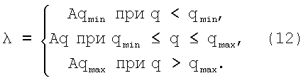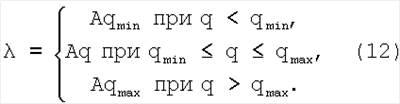 При этом для режимов с величинами скоростного напора, принадлежащим нерасчетным значениям qmin и q>qmax, величина ограничивается соответствующими значениями, т.е.